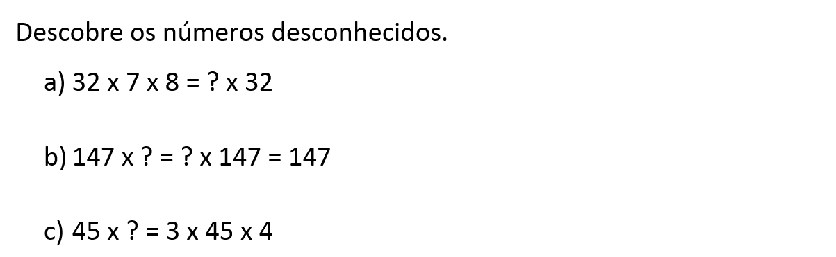 Por último, esta operação admite a existência de um elemento neutro que é o número 1, uma vez que: `4xx1=4`, sendo este exemplo válido para qualquer número, temos que: `axx1=a`.