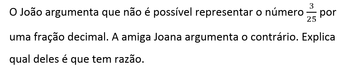 A todo o número que se pode representar por uma fração damos o nome de número racional. Os números naturais e os números inteiros são um subconjunto dos números racionais. Por último, as frações com denominador 10, 100, 1000, ... chamam-se frações decimais. Inversamente, qualquer fração decimal representa um número decimal. Este pode ser obtido a partir do numerador, deslocando a virgula para a esquerda tantas vezes quantas o número de zeros presentes no denominador. Por exemplo: `2/10 = 0.2`.