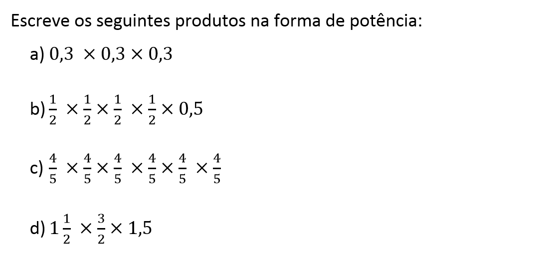 A potência de um número, representa um produto de fatores iguais a esse número.