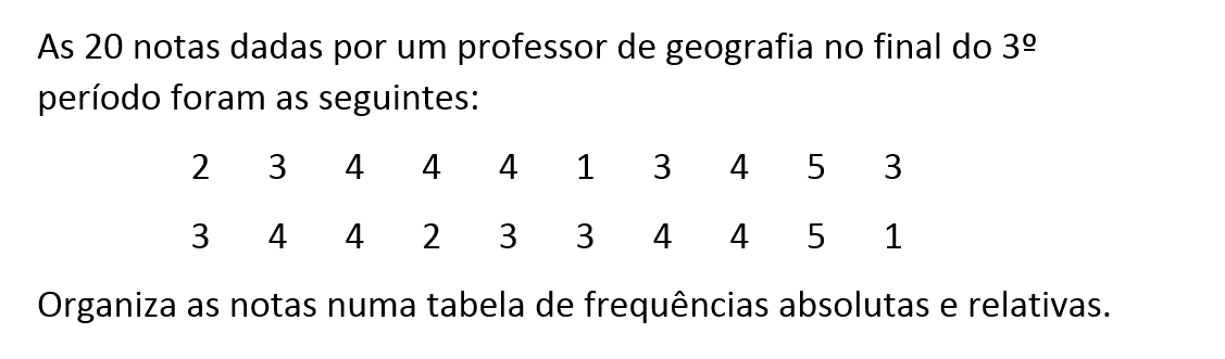 A frequência absoluta refere-se ao número de vezes que uma determinada variável assume esse valor. Enquanto que a frequência relativa (normalmente expressa em percentagem) é o quociente entre a frequência absoluta e o total da amostra.