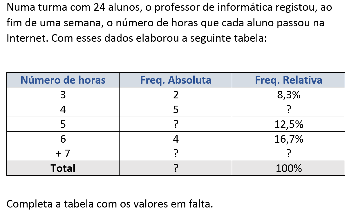 Vê com atenção o vídeo que contém a explicação da matéria. De seguida, imprime a ficha de trabalho e tenta resolver o máximo de exercícios que conseguires sobre este tema. Se tiveres alguma dúvida nos exercícios que disponibilizamos, consulta a resolução proposta ou coloca uma questão no fórum. Bom estudo!