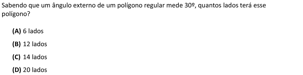 Repara que não existe nenhuma fórmula para calcular a soma das âmplitudes dos ângulos externos de um polígono. Isto porque, o resultado dessa soma é sempre 360º, independentemente do número de lados que o polígono possa ter.