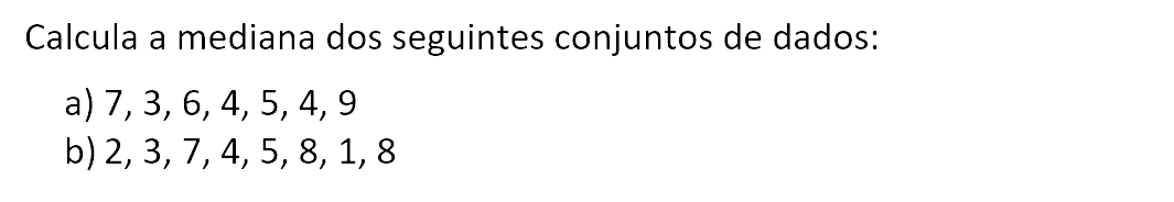 Por exemplo: 4, 6, 8, 10 → mediana = (6 + 8) ÷ 2 = 7.