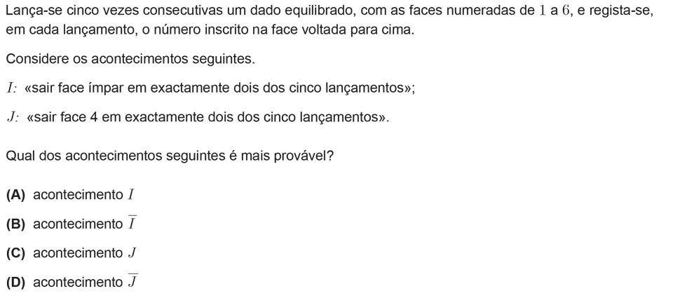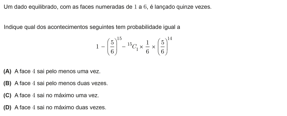 d) a probabilidade de se realizar o acontecimento em estudo é a mesma em todas as provas e vai ser representada por `p`.