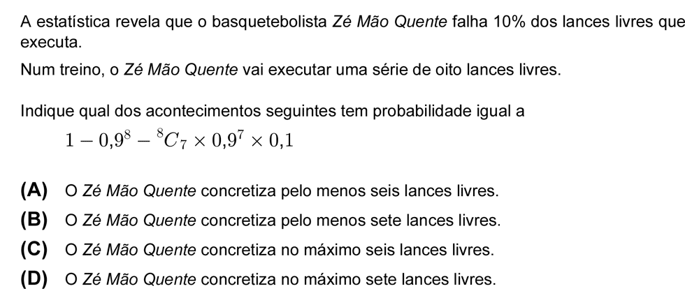 Numa situação com estas características, à variável `X` que representa o número de vezes que o acontecimento se realiza, ou seja, o número de sucessos nas `n` provas chama-se variável aleatória com distribuição binomial de parâmetros `n` e `p`.