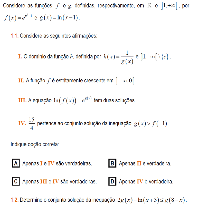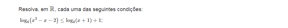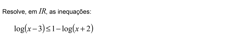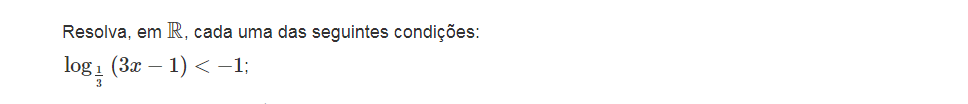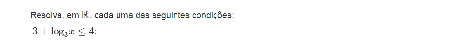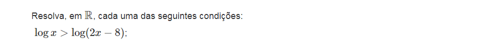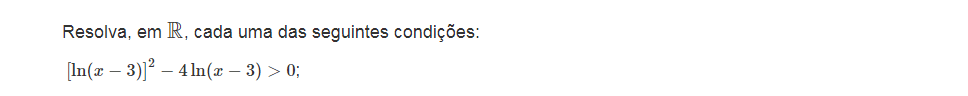 Atenção que se deve ter sempre em conta o Domínio de existência das expressões que figuram na condição tendo em consideração que só os números positivos tem logaritmo.
