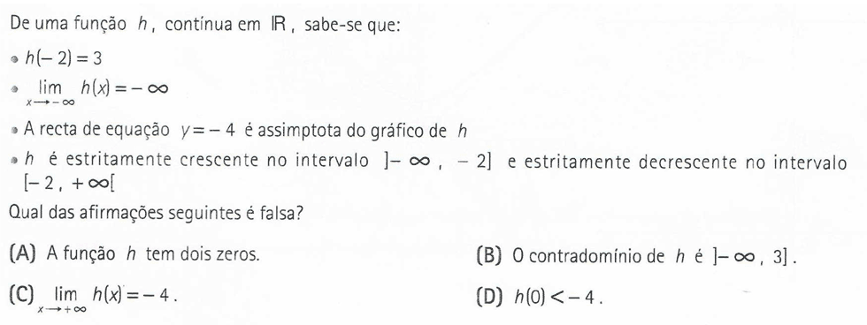 Boa tarde. A duvida é a seguinte: no exercicio n°10, quando diz que y=-4 é assimptota da função. Essa assimptota não atravessa os quadrantes 3 e 4 do grafico? Impedindo logo ali que o Contradominio da funçao fosse ]-inf, 3] ?? Obrigado pela atenção! Este site é excelente!!!!