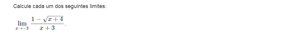Não costumo responder a dúvidas relacionadas com exercícios propostos pelos alunos. Como estou com tempo, vou abrir uma pequena exceção! A forma mais fácil de levantar essa indeterminação e poder assim calcular o limite dessa função, consiste em multiplicar o numerador e o denominador pelo conjugado. No caso do teu limite, o conjugado é `sqrt(x^2+9) + 2x`. Deste modo, irá aparecer no numerador o caso notável chamado de Diferença de Quadrados que irá permitir eliminar a raiz e tornar assim mais fácil levantar a indeterminação.