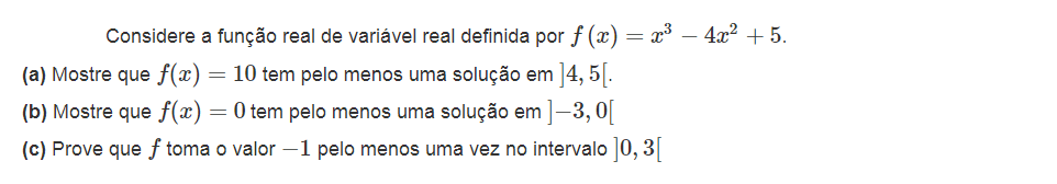 Boa noite. Na resolução do exercício 10, na parte final, não se deveria dizer que pelo Corolário tem pelo menos uma solução em ]1,3[ e não em [1,3]??