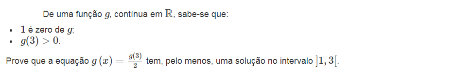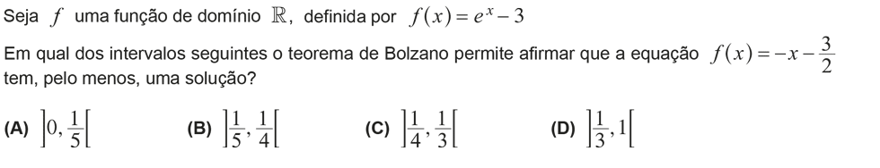 Sim, confirmo. Tudo depende da forma como apresentas a resolução. Seja qual for a equação, que estamos a resolver, podemos sempre passar todos os termos para o primeiro membro e igualar a zero. Desta forma, podemos utilizar o corolário para provar que a equação dada tem pelo menos uma solução no intervalo pedido. Mas se não fizeres desta forma, não há problema, também podes utilizar o Teorema de Bolzano para mostrar que a equação tem solução.