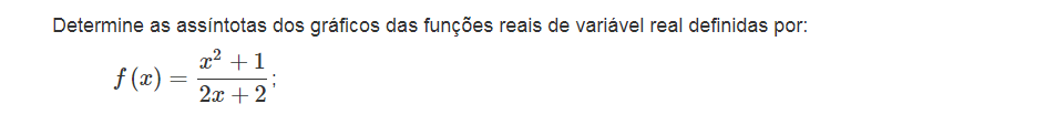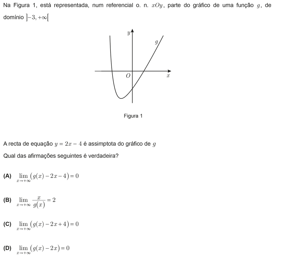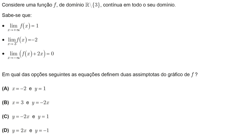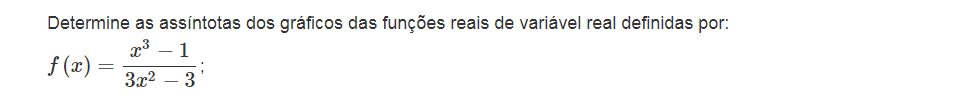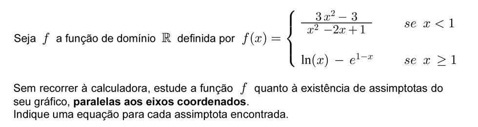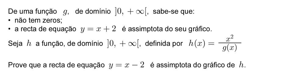 Olá! Sabe-me dizer quando é que nós conseguimos saber que uma função não tem assintotas horizontais olhando apenas para ela? É que eu fiz um exercício que estava relacionado com isso, se não me engano falava do domínio, só que não percebi a explicação. Agradeço se me conseguir ajudar!