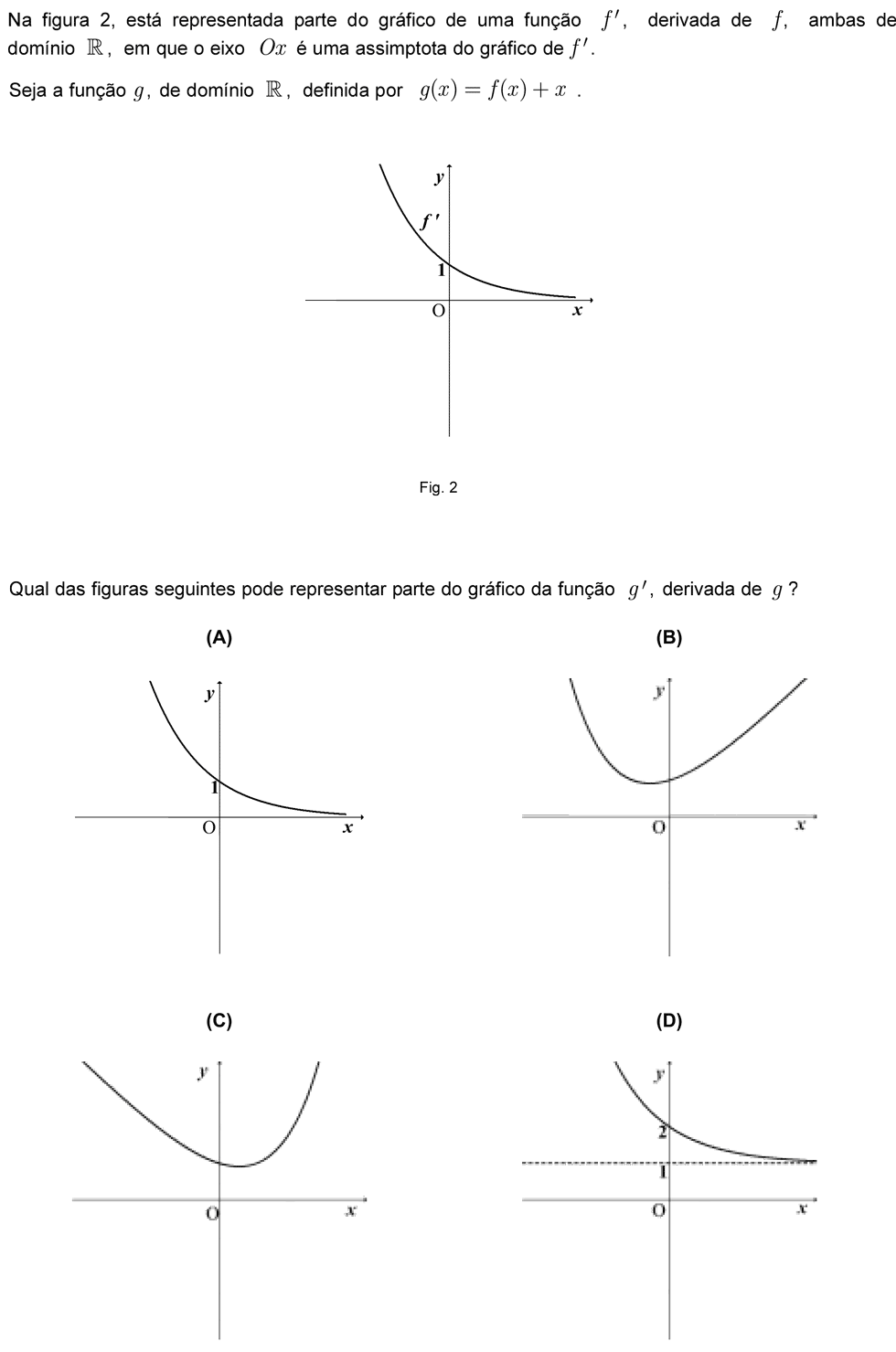 Já sabes que a derivada de uma função real de variável real num ponto é o declive da reta tangente ao gráfico da função nesse ponto. Se a derivada é positiva em todos os pontos de um intervalo, então a função é monótona crescente nesse intervalo, isto é, os objetos e as imagens variam no mesmo sentido.