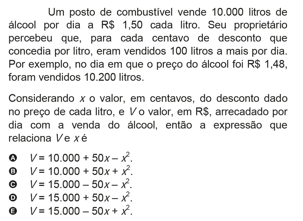Exercício de escolha múltipla de matemática do ENEM de 2009